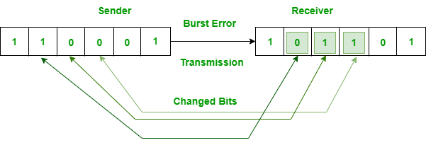 只有数据包中的一小部分被修改或损坏了。 | 数据包中的多个比特位在极短的时间内被损坏了(即发生了“突发错误”)。 |