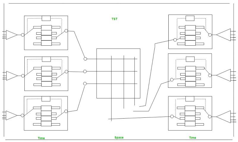 - 这种多阶段交换机可以被设计成时间-空间-时间(TST)型交换机。