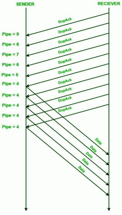 当发货人收到一定数量的确认信息(通常为三个)时,他相信丢失的包裹已经重新被发送出去了,而收件人也已经开始接收这些包裹了。此时,源节点就会从快速恢复状态中退出,继续以比以前更快的速度进行数据传输。