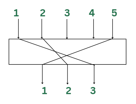 所谓压缩P-box,是指一个具有n个输入和m个输出的P-box。m<n也就是说,输出的数量少于输入的数量。在这种类型的p-box中,由于并非所有输入数据都被用于生成输出结果,因此会有少量比特被丢弃。