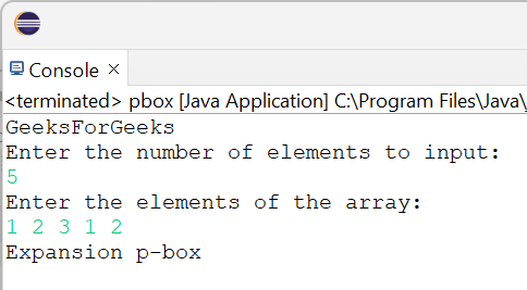Java进口java.util.Scanner;公共的类 GFG{// 一个用于检查输入中的数字是否重复的函数公开的静态的布尔值正在重复(整数a[]){布尔值正在重复=错误的/不正确的;为了(整数i=0;i<a.长度;i++){为了(整数j=i+1;j<a.长度;j++){if(a[i]==a[j]){正在重复=真的/正确的;打破/中断;}}if(正在重复){打破/中断;}}返回正在重复;}// 用于检查数组中最大值是否大于其他数值// 大于数组的长度公开的静态的布尔值非常有价值(整数arr[]){布尔值更大的价值=错误的/不正确的;为了(整数i=0;i<arr.长度;i++){if(arr[i]>arr.长度){更大的价值=真的/正确;}if(更大的价值){打破/终止;}}返回更大的价值;}公开的静态的无效/无意义主要/核心(字符串参数/变量[]){扫描仪sc=新的扫描仪(系统/体系.in);// 输入所需的元素数量系统/体系.外出/离开.println(请输入要输入的元素数量:);整数大小=sc.下一个整数();整数[]arr=新的整数[大小/尺寸];// 输入需要检查的元素组成的数组系统/体系.外出/离开.println(请输入数组中的元素:);为了(整数i=0;i<尺寸/大小;i++){arr[i]=sc.下一个整数();}// 如果没有任何值重复出现,那么至少有一个值是重复的。// 如果大于数组的大小,那么就需要进行压缩了。// p-boxif(!正在重复(arr)&&非常有价值(arr)){系统/体系.外出/离开.println(“压缩p-box”);}// 如果没有任何值重复出现,且所有值都小于某个阈值的话如果它的大小大于或等于数组的大小,那么就可以直接使用了。// p-box否则if(!正在重复(arr)&&!非常有价值(arr)){系统/体系.外出/离开.println(“纯正的P型箱”);}// 如果“重复条件”成立,且有任何值小于……// 或者,如果大小与数组的大小相等,那么这就是一种扩展方式。否则if(正在重复(arr)&&!非常有价值(arr)){系统/体系.外出/离开.println(“扩展型p-box”);}否则{系统/体系.外出/离开.println(请请输入一个有效的数组。);}}}
