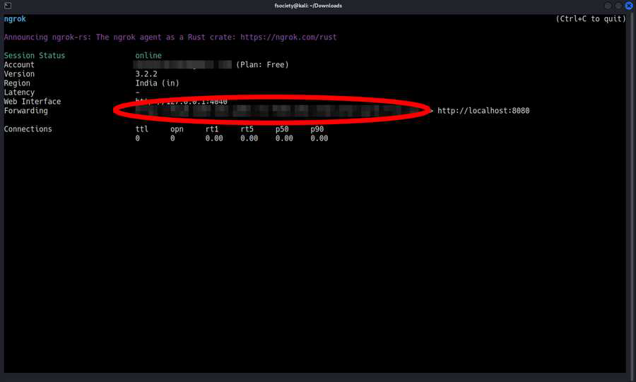 我们只需要使用一个 ngrok 命令,就可以建立 TCP 连接。这样,我们就能创建一个绕过所有障碍的隧道了。防火墙/NAT.