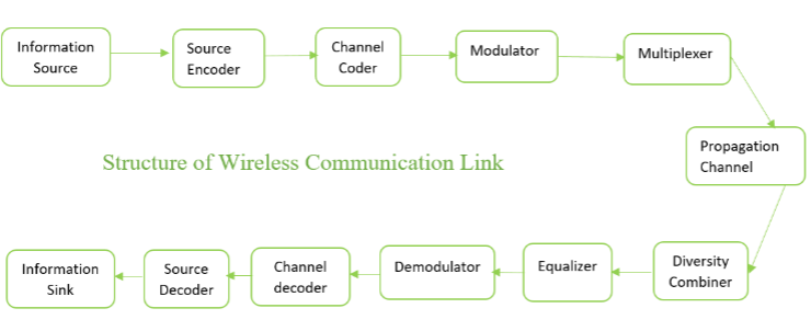 无线通信链路的结构由多个关键组件构成,这些组件共同协作,以维持发射器与接收器之间的连接。每个组件在确保数据从发射器顺利传输到接收器方面发挥着重要作用。下图展示了无线通信链路的完整结构。