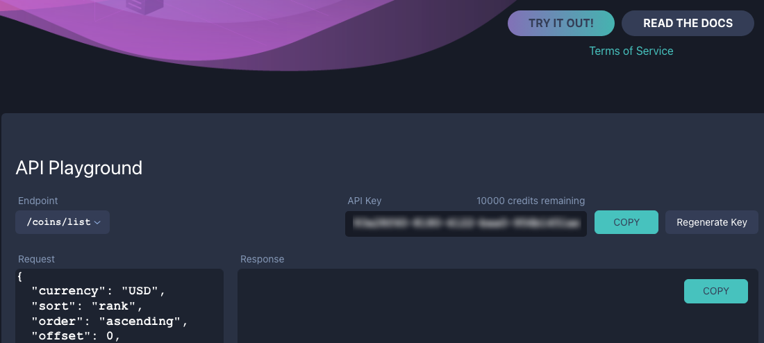 该函数会向目标服务器发送一个HTTP POST请求。硬币/单个通过使用 Google Apps Script 中的 UrlFetchApp 类来实现这一功能。请求头中包含了指定的货币代码和 API 密钥。从 API 返回的响应会被处理并存储为 JSON 对象,其中包含了指定加密货币的交易量,该数据会被存储在一个名为“volume”的变量中。体积/数量该函数的最后一步是返回计算出的交易量作为输出结果。