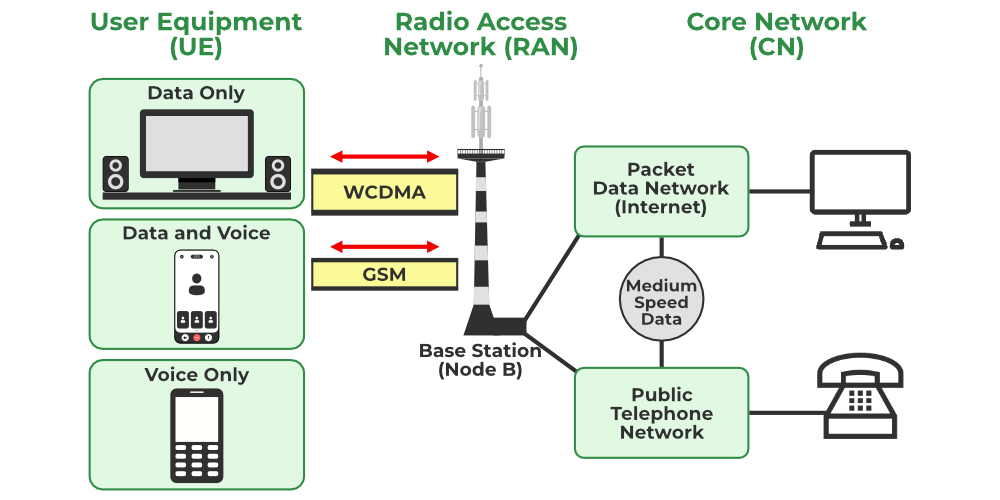 WCDMA技术的研发始于20世纪90年代末,而第一个WCDMA网络则于2001年在日本投入使用。当时,有数百个WCDMA网络正在运行,共有150家运营商获得了使用WCDMA频率的许可。如今,WCDMA网络已遍布欧洲和亚洲,其使用的频段为2吉赫左右。WCDMA也被称为……通用移动通信系统(UMTS)这是由国际电信联盟(ITU)制定的第三代移动通信标准。WCDMA是两种被标准化的3G技术中的其中一种。国际电信联盟(ITU)与TD-SCDMA一起。