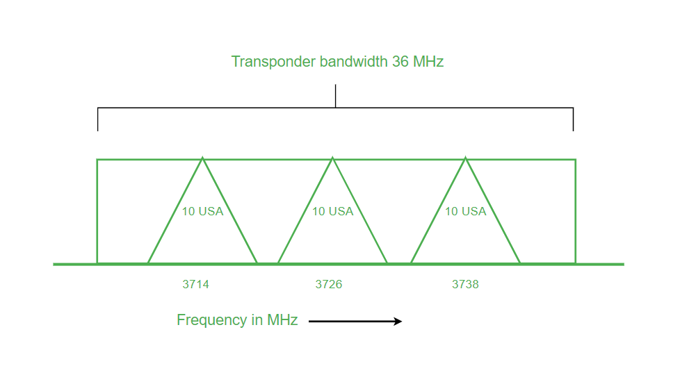 - 每个地面站都使用不同的射频载波进行频率调制。