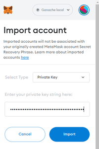 私钥E.打开 Metamask 后,点击“导入账户”选项卡。此时,你会被重定向到需要输入特定账户的私钥的页面。你需要输入你想要导入的该账户的私钥。