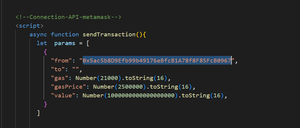 JSON-RPC API [eth_sendTransaction] 的连接状态:这部分就是我们将在 Web3 项目中实现 JSON-RPC API [eth_sendTransaction] 的接口部分。这是最重要的部分。只需将下面提供的脚本粘贴到这里即可。