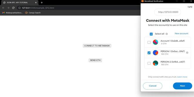 1.点击“连接到MetaMask”按钮后,我们的ETH账户就会与用于进行所有交易的网页连接在一起。当您点击“连接到MetaMask”按钮时,会弹出一个MetaMask的窗口。