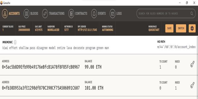 9. 此外,您还可以在GANACHE上查看相关的交易记录与详细信息。具体操作步骤如下: