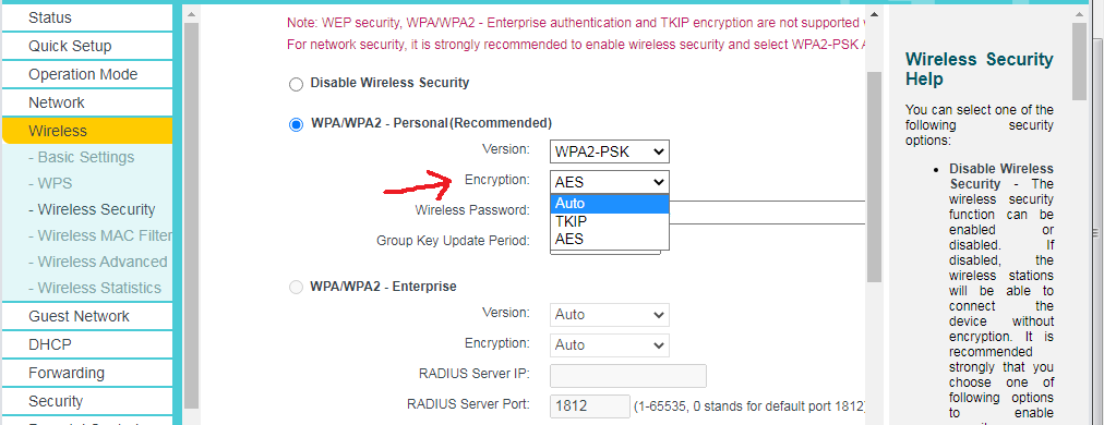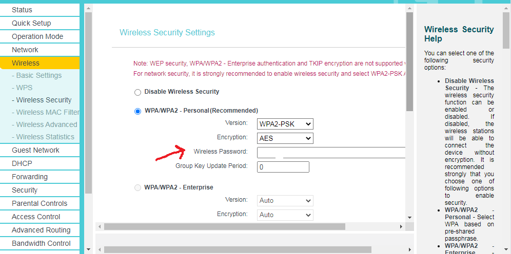- 请打开路由器的无线安全设置页面,以在您的家庭或办公室网络中启用加密功能。在这个页面上,您可以选择所需的安全方式。请输入密码以访问该网络。