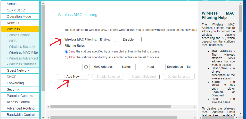 - 为了启用并允许MAC地址过滤功能,你需要输入所有你信任的、可以用来连接网络的MAC地址(也就是你用来上网的所有设备的MAC地址)。找到这些设备的MAC地址,然后将其添加到“设置”选项中的列表中。你可以通过在Google上搜索相关设备的说明来快速找到其MAC地址。