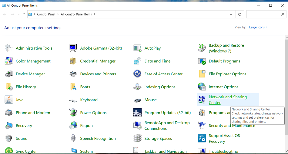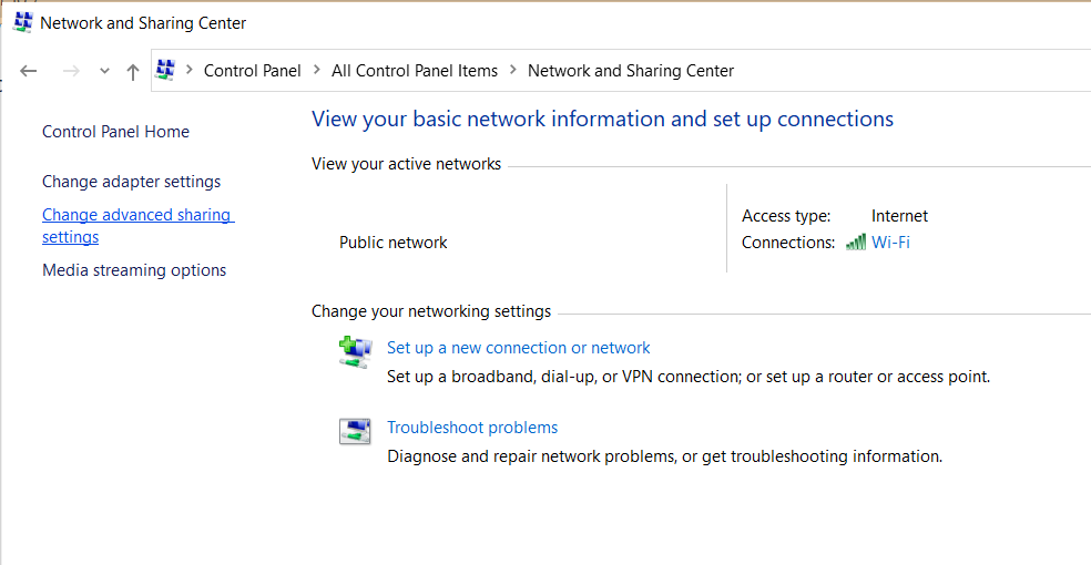 点击“网络和共享中心”后,会看到如下的屏幕显示内容。