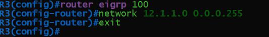 R3(config)#router eigrp 100 R3(config-router)#network 12.1.1.0 0.0.0.255 R3(config-router)#exit