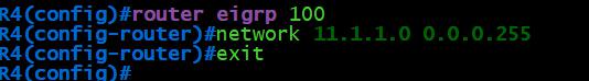 R4(config)#router eigrp 100 R4(config-router)#network 11.1.1.0 0.0.0.255 R4(config-router)#exit