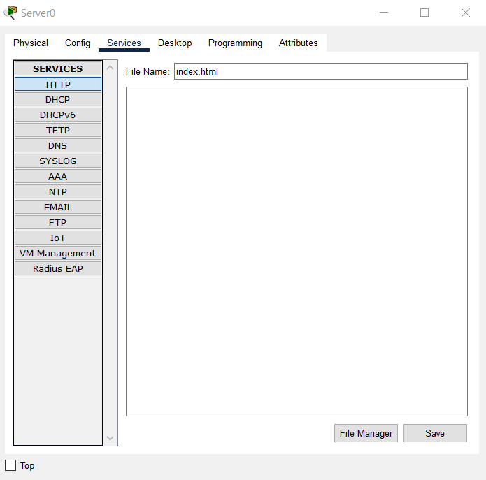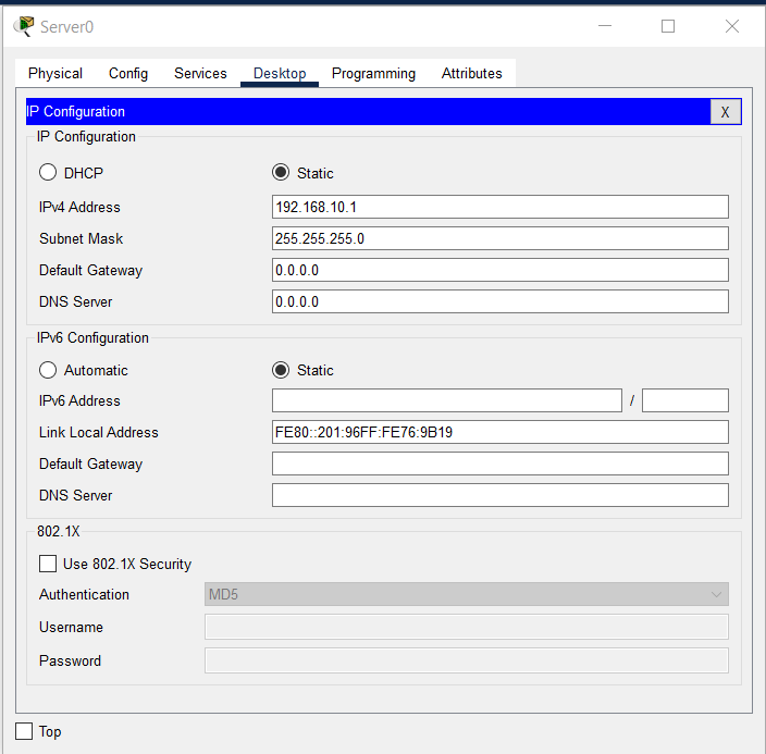 步骤3:点击Server0。然后点击“IP配置”,为网络服务器设置IP地址。