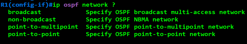 R1(config-if)#ip ospf 网络 点对点