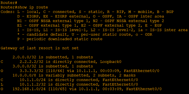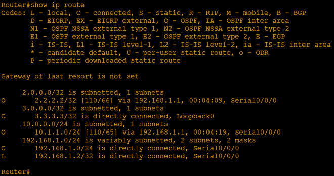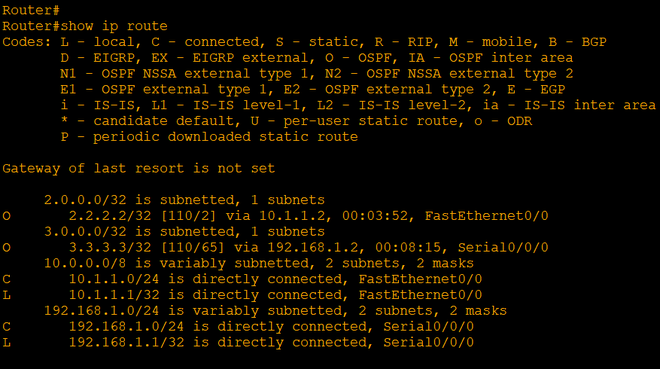 步骤7:检查路由器上的IPv4路由表,发现存在OSPF路由条目。