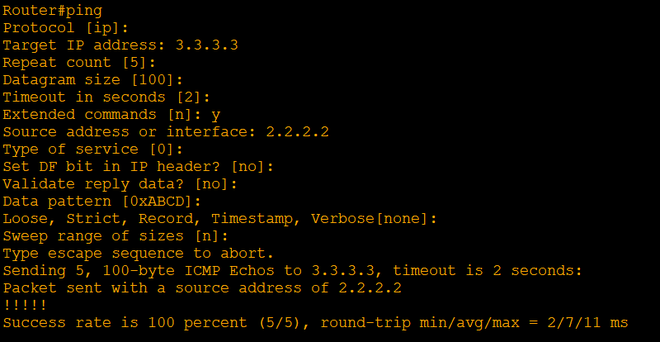 从R2出发的Ping R3的回环接口,以及R2的回环接口作为源接口。