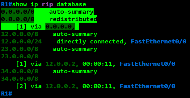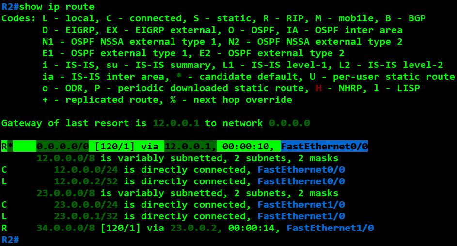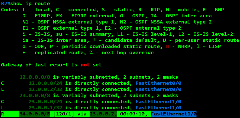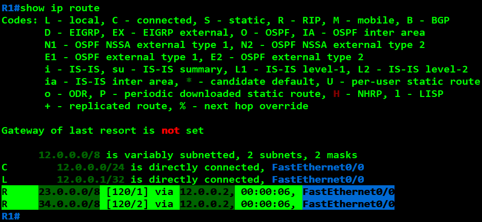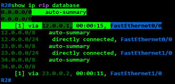 R2(config)#router rip R2(config-router)#network 12.0.0.0 R2(config-router)#network 23.0.0.0