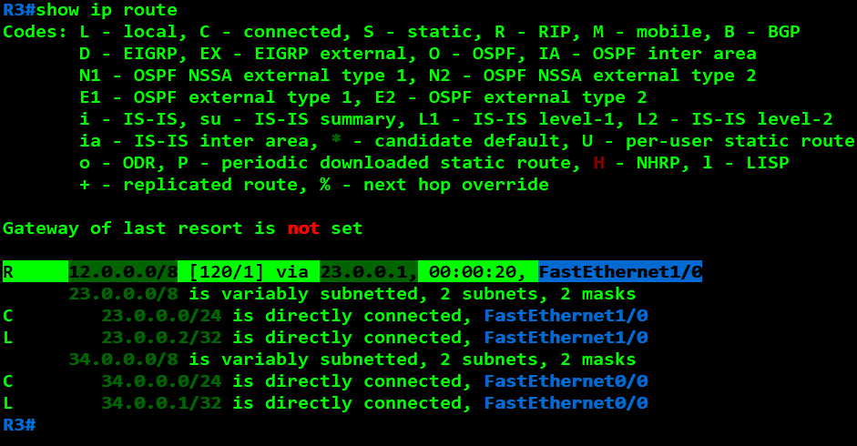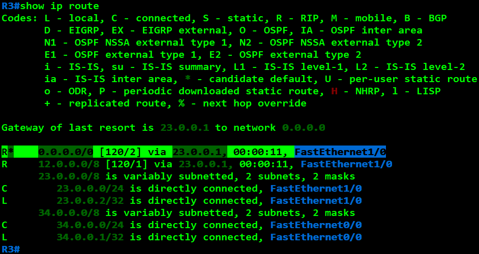 R3(config)#router rip R3(config-router)#network 23.0.0.0 R3(config-router)#network 34.0.0.0