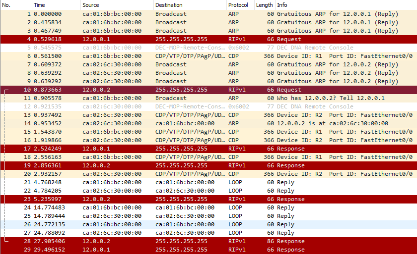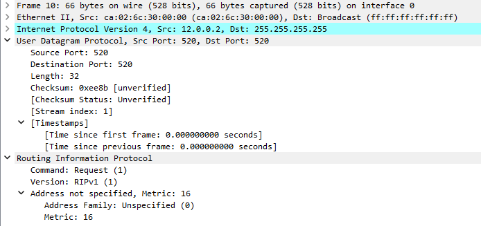 用红色标出的数据包属于RIPv1的广播数据包。
