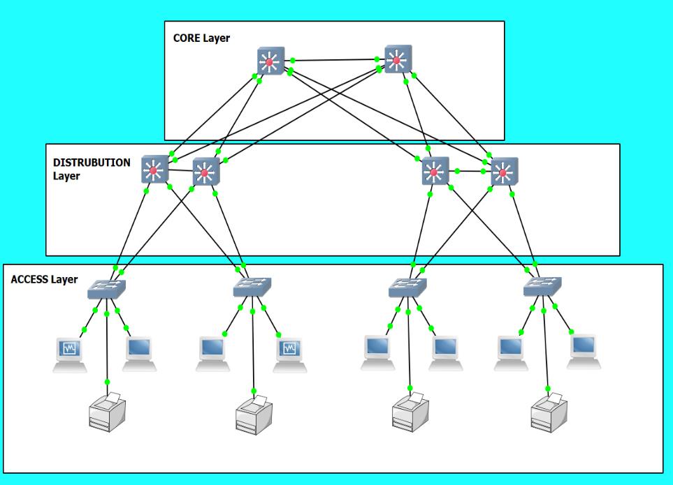 分层网络设计如您所见,典型的三层分层网络设计结构由三层组成: