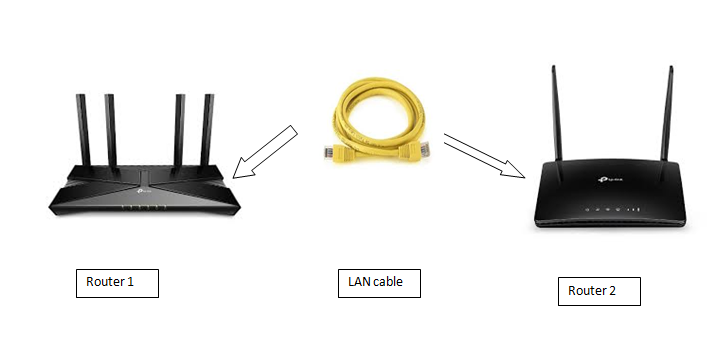 步骤7:将第一台路由器的局域网端口与以太网线连接在一起,然后将该线路连接到第二台路由器的广域网端口上。