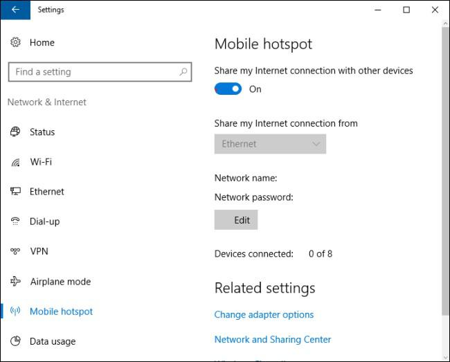 步骤4:请为移动热点功能启用“与其他设备共享我的互联网连接”功能。