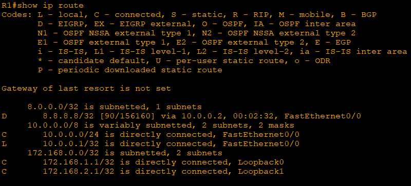 R2(config)#interface Loopback0 R2(config-if)#ip address 8.8.8.8 255.255.255.255