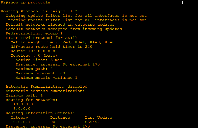 Router(config)#router eigrp 1 Router(config-router)#network 10.0.0.0 Router(config-router)#network 8.8.8.8