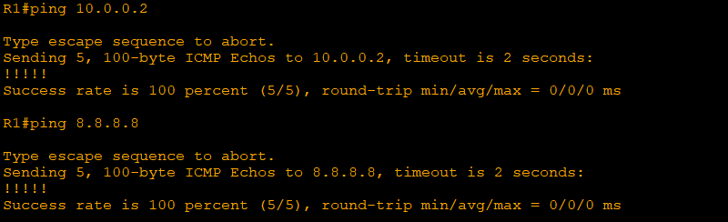 R1#ping 10.0.0.2 R1#ping 8.8.8.8