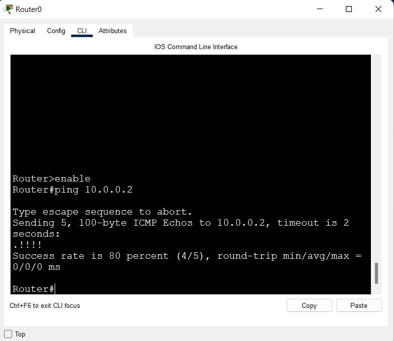 Router#ping 10.0.0.2