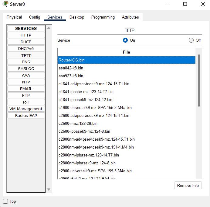 Go to the Services Tab and then click on the TFTP tab to check if our IOS Destination filename is present on the list.