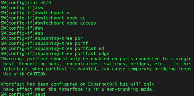 int e0/0 switchport mode access spanning-tree portfast edge