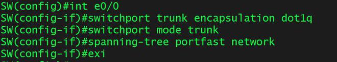 int e0/0 switchport trunk encapsulation dot1q switchport mode trunk spanning-tree portfast network