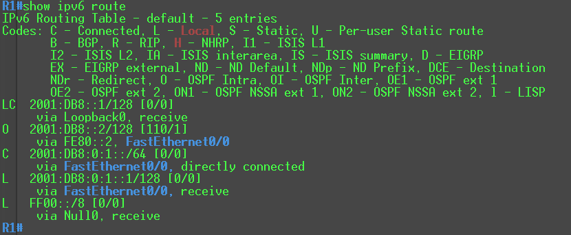 R1(config)#interface loopback0 R1(config-if)#ipv6 address 2001:DB8::1/128