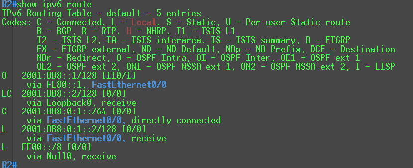 R2(config)#interface loopback0 R2(config-if)#ipv6 address 2001:DB8::2/128