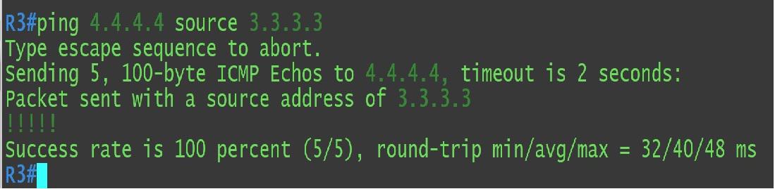 R3# ping 4.4.4.4 源地址:3.3.3.3