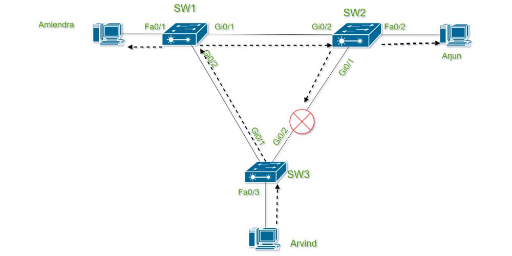 - 现在,Switch2通过其e0/1端口接收到了C-BPDU消息。因此,该端口将成本值从100更新为200。同样,Switch3也通过其e0/1端口接收到了C-BPDU消息,该端口也将成本值从100更新为200。