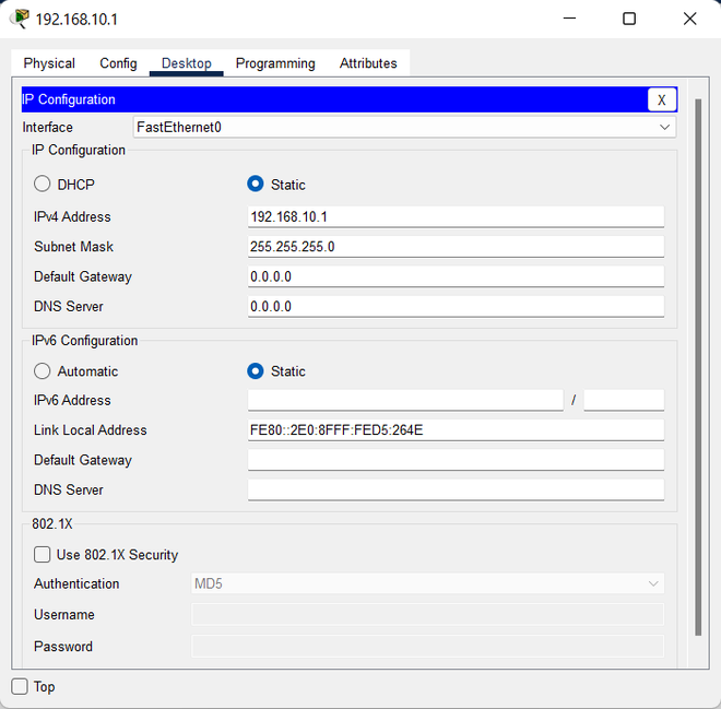 步骤4:现在,我们需要为VLAN-FACULTY下的主机进行配置。在这里,我将IP地址从192.168.10.4到192.168.10.6的主机都归入VLAN-FACULTY中。为此,只需按照步骤3中的说明进行操作即可。不过,不要选择VLAN编号150:STUDENT,而应该选择250:FACULTY,以用于FastEthernet0/4、FastEthernet0/5和FastEthernet0/6接口。