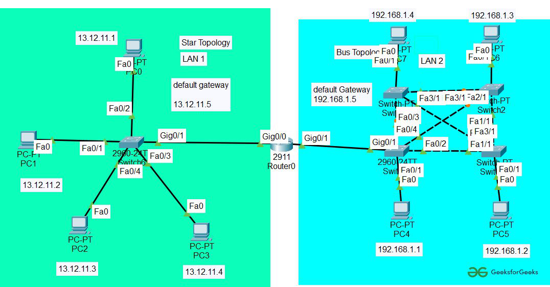 | PC5 | 192.168.1.2 | 255.255.255.0 | 192.168.1.5 |