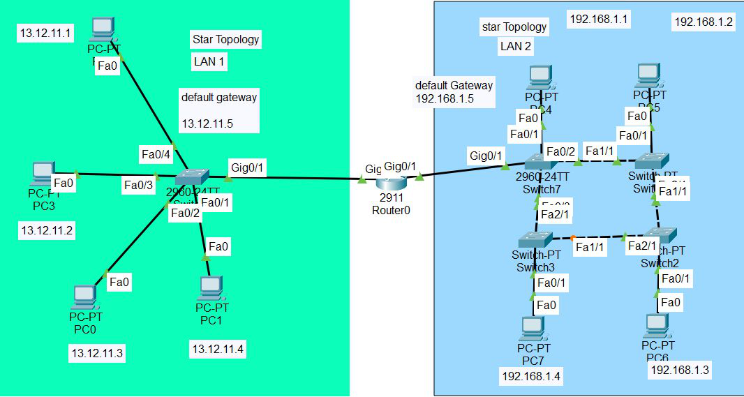 | PC1 | 13.12.11.2 | 255.255.255.0 | 13.12.11.5 |
