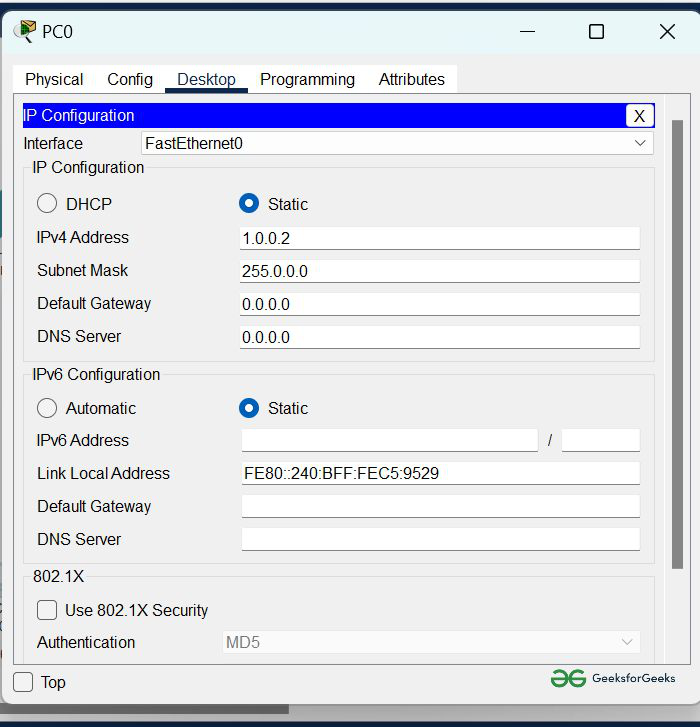 | PC2 | 1.0.0.4 | 255.0.0.0 |