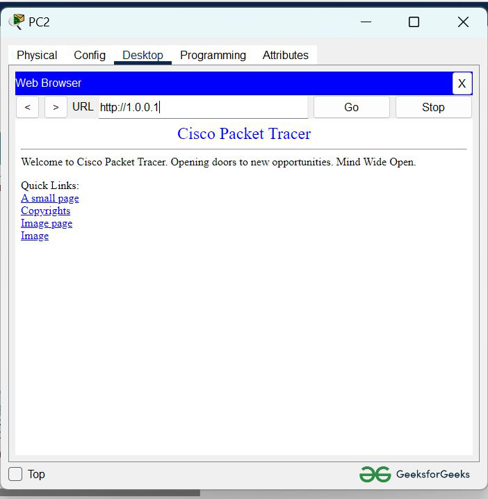 - 点击PC2,然后进入桌面,最后再打开网页浏览器。