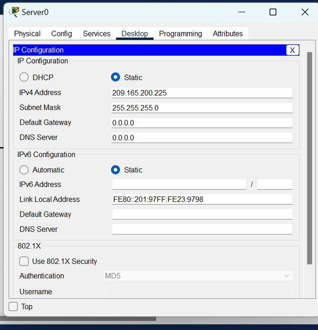 | 服务器-PT | 无 | 209.165.200.225 | 255.255.255.0 |