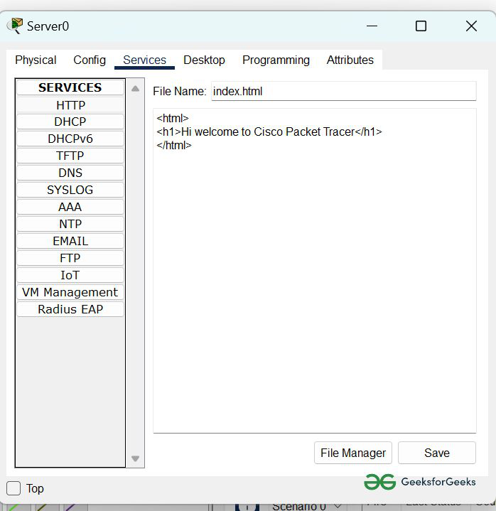 在Cisco Packet Tracer中配置DHCP和Web服务器