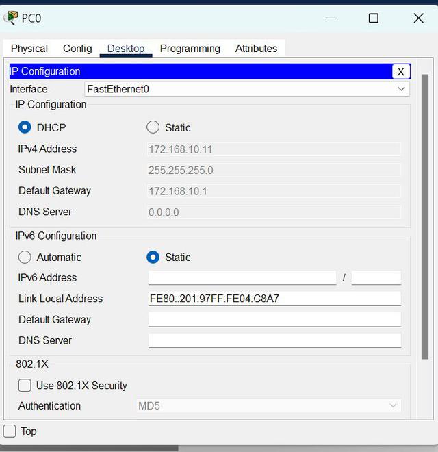 - 要为PC0分配一个IP地址,请点击PC0。