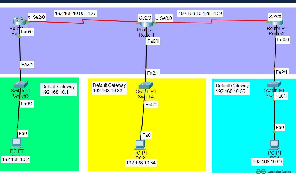 | PC2 | 192.168.10.66 | 255.255.255.242 | 192.168.10.65 |