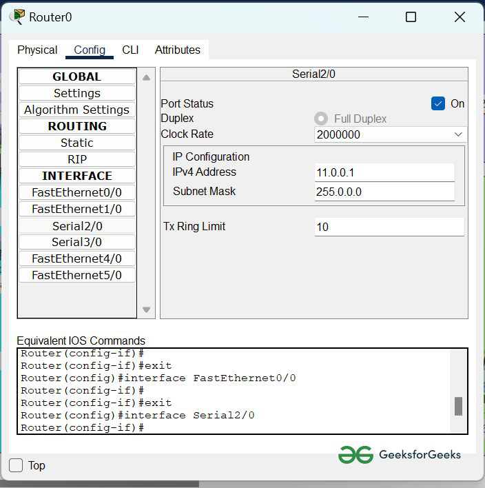 | Serial2/0 | 11.0.0.1 | 255.0.0.0 | |